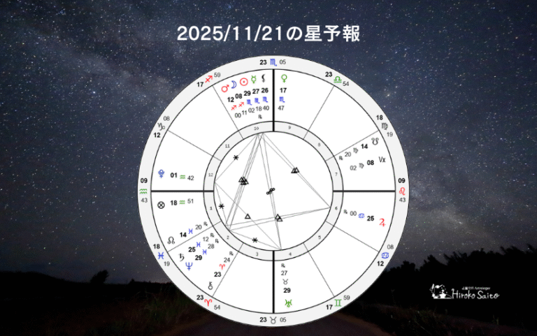 概要 射手座月は射手座火星とコンジャンクション(0度)で、向上心も高まり、競争心がメラメラと燃え上がる。翌日に射手座シーズン入りを控えて、既に心は冒険 … 続きを読む 2025/11/21の星予報