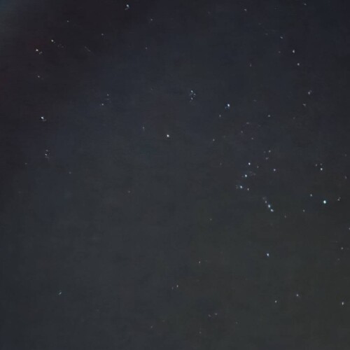 木星(左上)とオリオン座(右上)とシリウス(真ん中下)の共演に花を添える星々。 街中でもこれだけ星が見えるのに、途中、前日までなかった街灯が増えている...