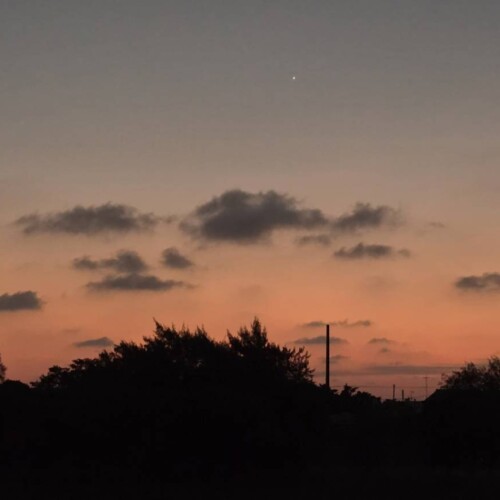ビーチには立ち寄らず、神社の参拝だけ済ませて帰ってくると、朝焼けとお月様のコラボが美しかった。