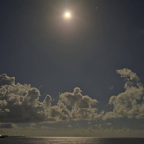 満月から大分日数も経ち、お月様は朝でもまだだいぶ高い位置にいて、海と一緒に写真に納めるのがなかなか難しかった。