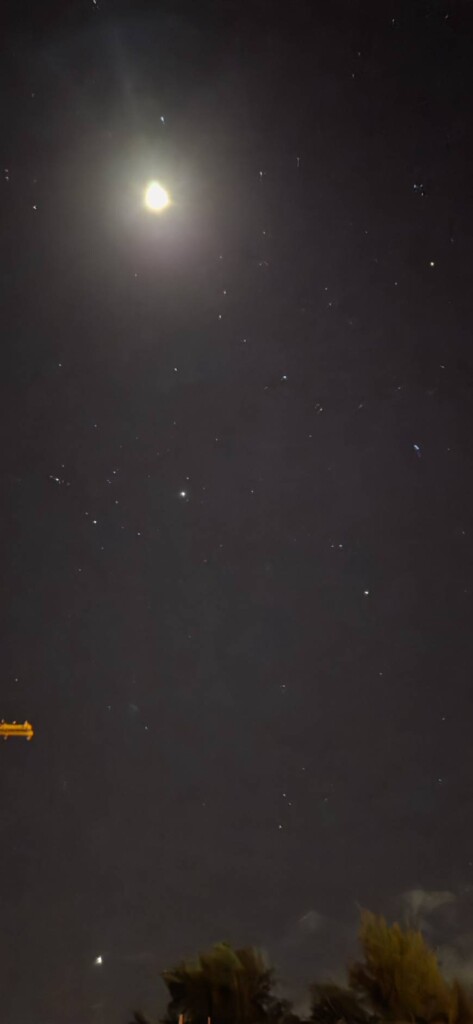 お月様もだいぶ木星&金星に近づいて来たけど、まだちょっと距離があるので、縦写。