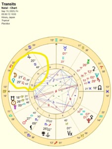 あとは、T蟹座木星がN蟹座水星/土星の合にアプライ中で、このタイミングのヴァーテックスも合になっていた・・・。