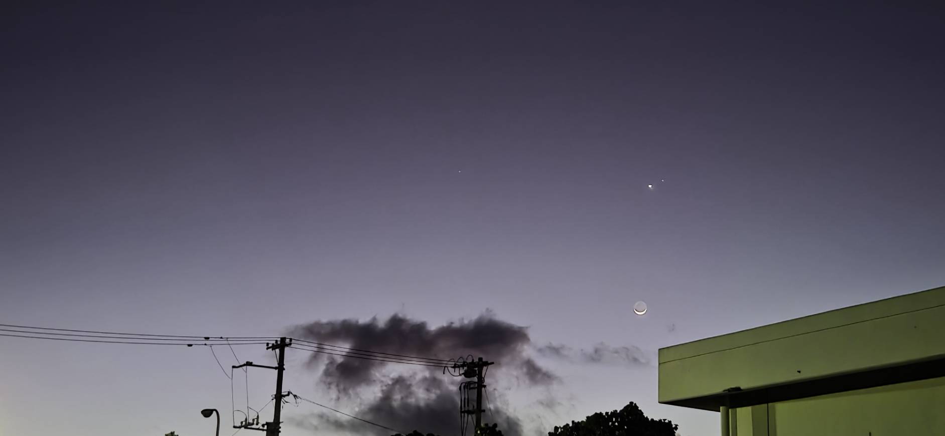 スマホの写真なので、かなり画像が荒いけど、金星の横に光るレグルス(しし座)も確認できた!!