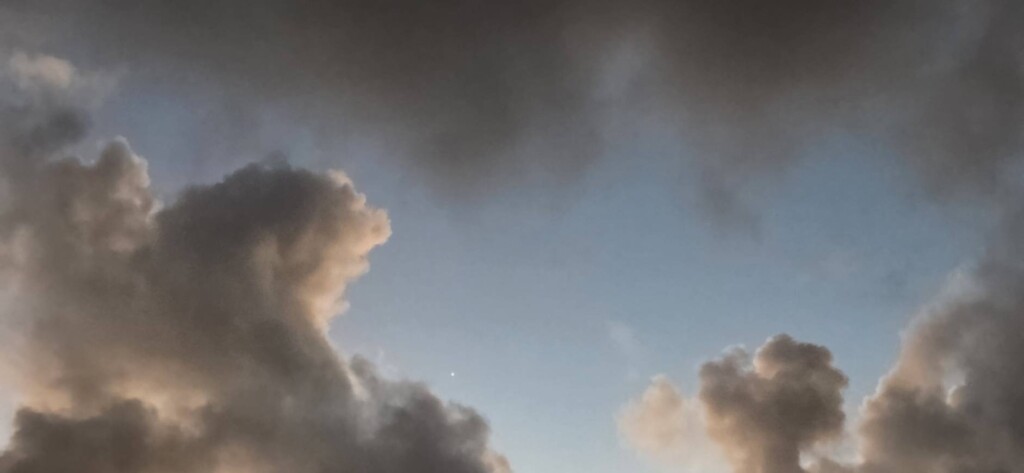 ウォーキング中、空一面に雲が広がった後、金星の周りだけ雲がどいてくれた。