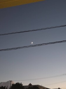 ふと窓の外を見ると、お月様がうす暗くなってきた西の空で一際輝いていた。