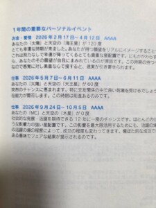 早速、来年の人生の重要イベントのページを見ると、すべてAマークで喜ばしいことだけで、それはそれで不安になる。