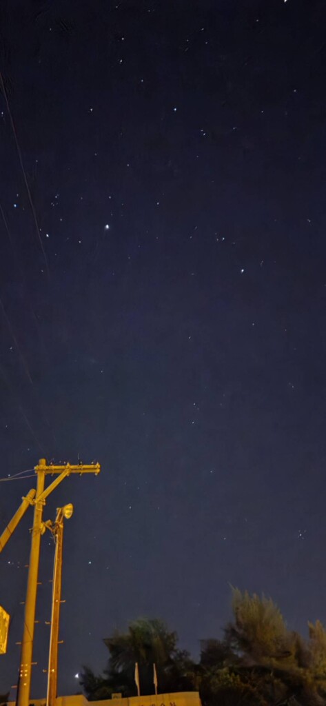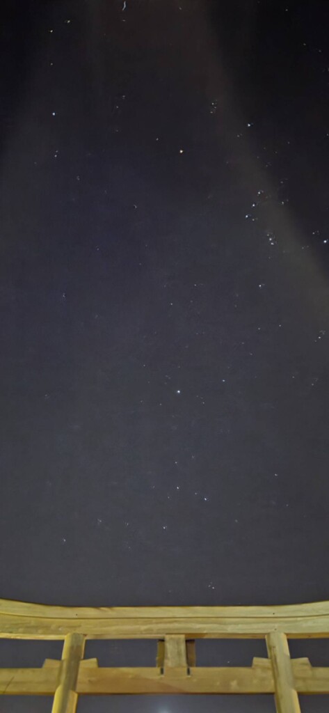 1ヶ月前は鳥居のうんと左側にあったオリオン座も鳥居の真上に輝くようになった。