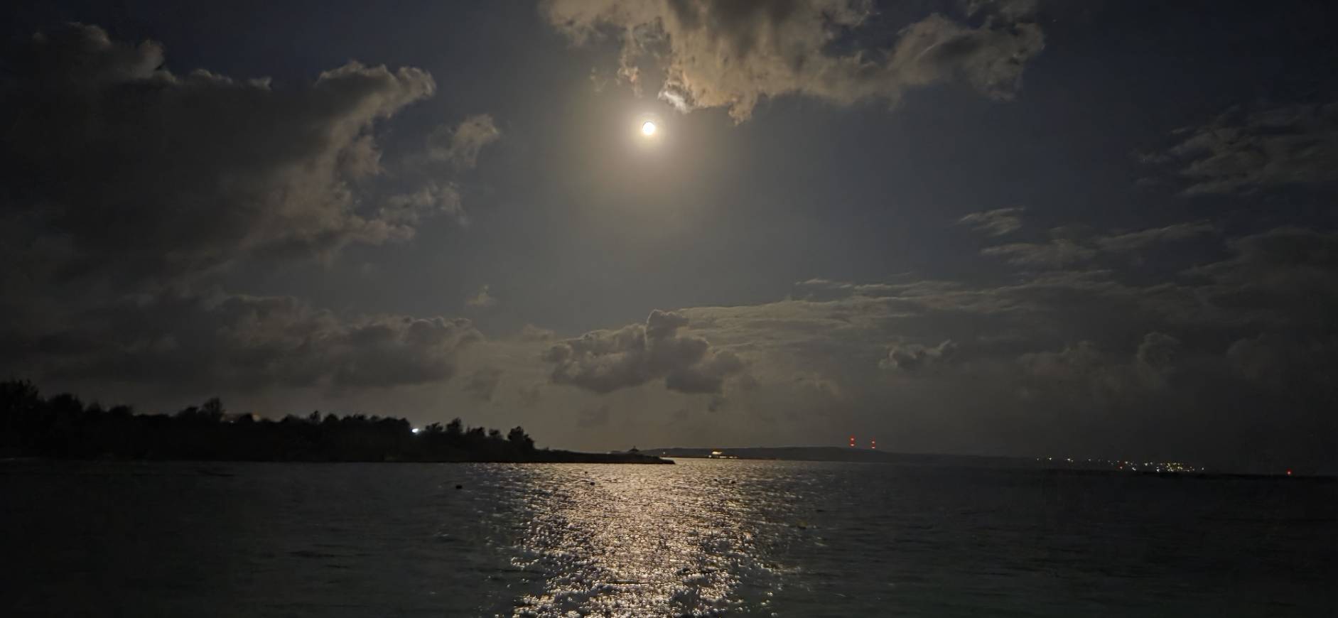 ビーチに行くと、だいぶ雲も切れて、ムーンロードもギラギラ✨