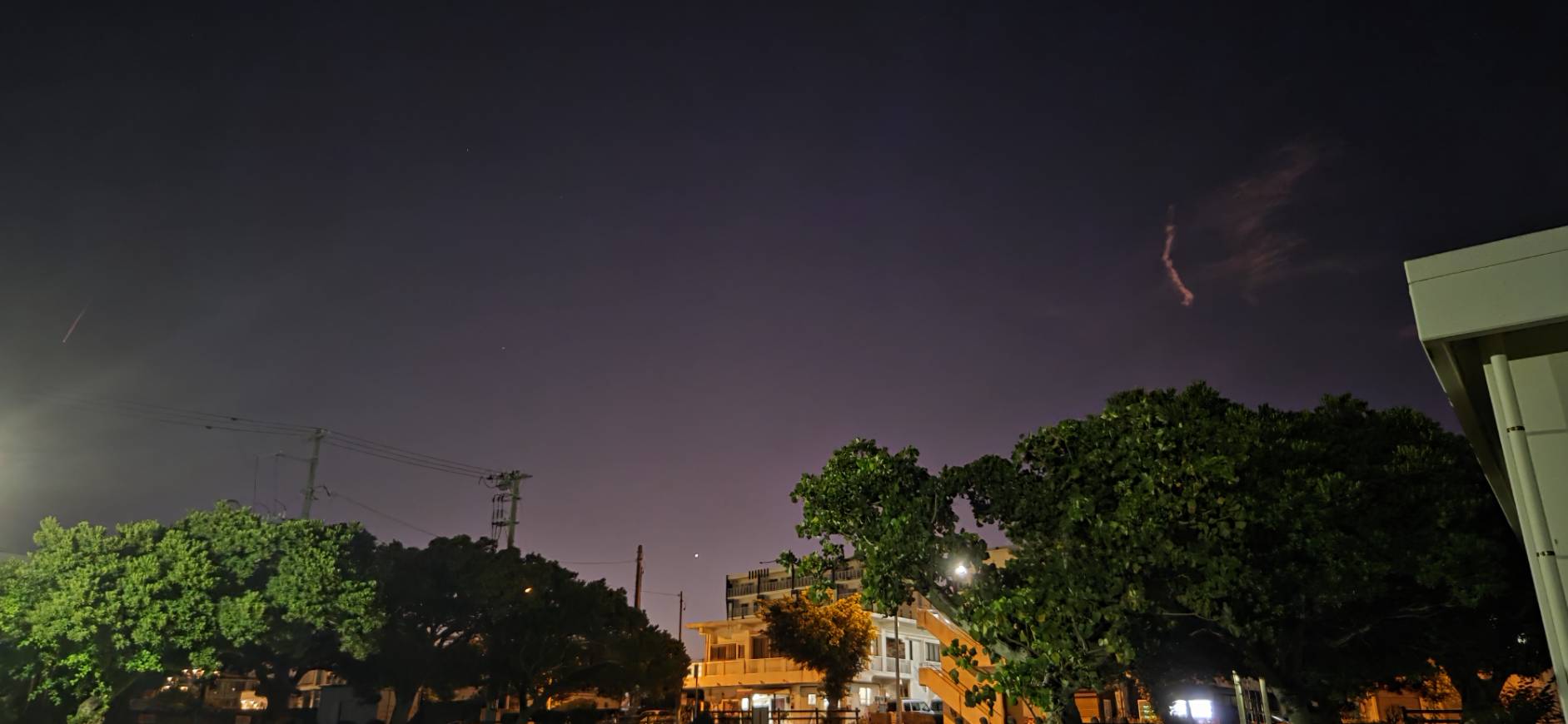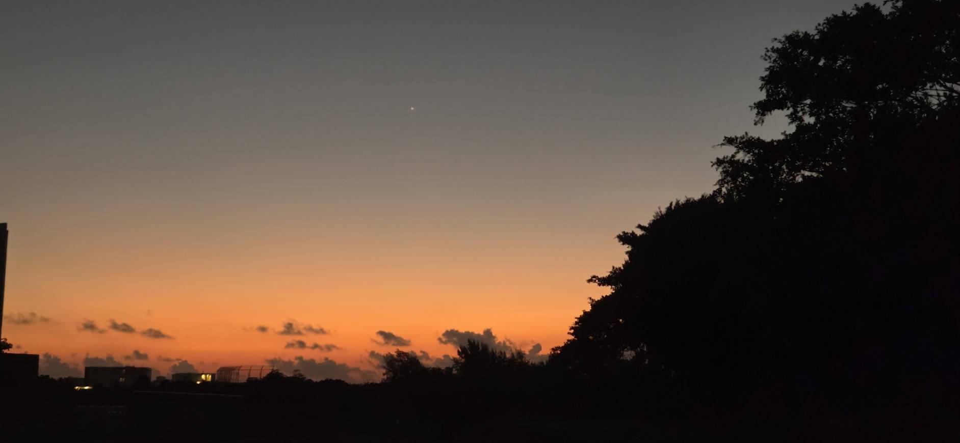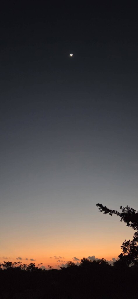 お月様と金星(木の枝の左横の白い点)。