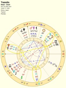 チャートを見てみたら、T月が天秤座に入ったばかりで、T水瓶座冥王星&T双子座天王星とで風のグランドトラインが出来上がっていた。