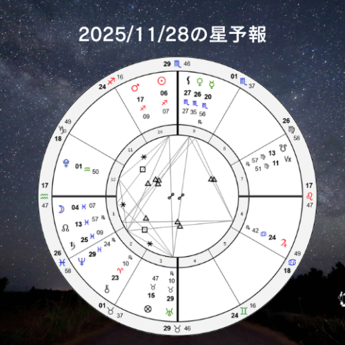 獅子座月は午後2時半頃、蠍座太陽とスクエア(270度)で、獅子座下弦の月を迎える。蠍座シーズンは他者と一体化するために、自分の気持ちを押し殺しすぎて、自分の本当の気持ちが分からなくなることがあるものの、獅子座月が自分の人生をどう楽しく生きるかを問いかけてくる。一旦、他者を度外視して、自分が本当に求めているものを見つめ直してみたい。