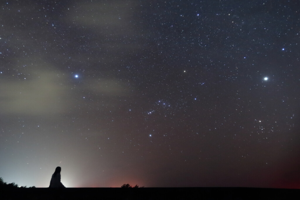 またまた曇り空だったので、アイキャッチ画像は4月に見た、もうすぐ西の地平線に沈みそうなオリオン座の写真。