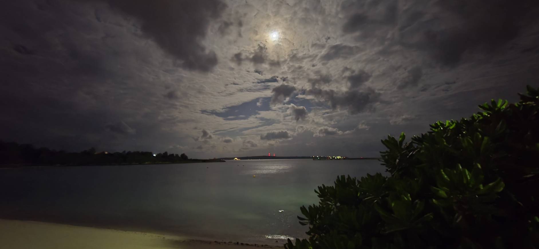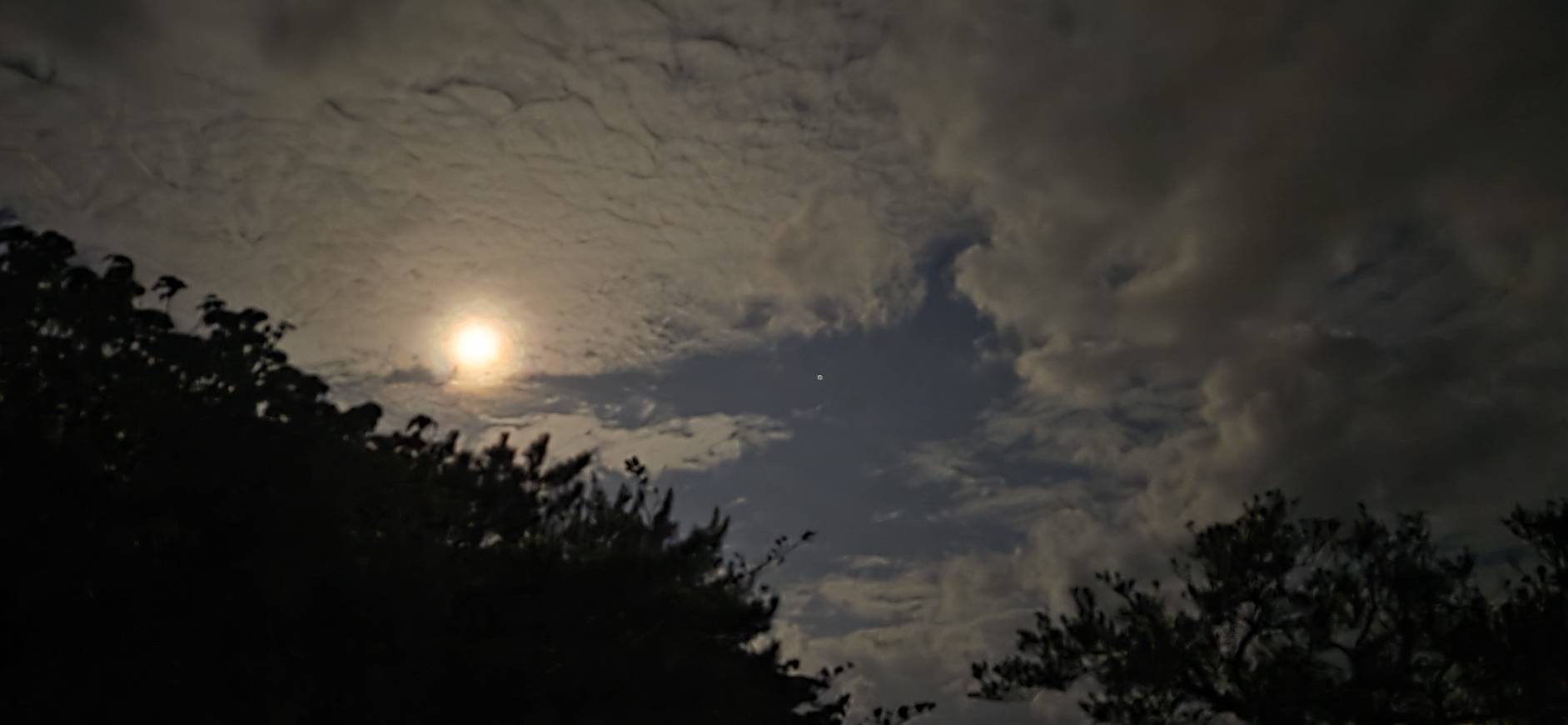 大分、雲に覆われていたけど、それでもこれだけ眩くて、海にムーンロードを作ってしまうのはさすが!!