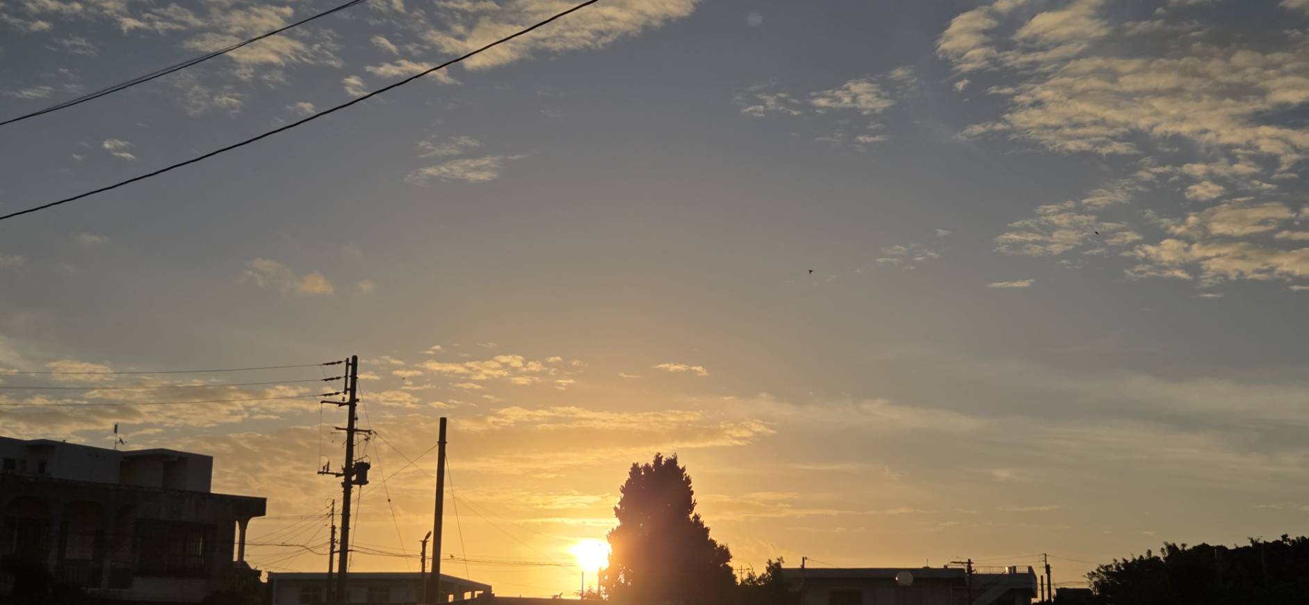 普段は、日が出る前の真っ暗な時間に家に着いちゃうけど、久しぶりに朝日も見えた。