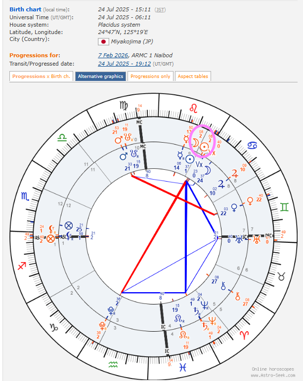 今日、私が打ったこの一打点は、半年後の凱旋へと続く確かな航路の始まりです。 太陽回帰図のプログレス新月という「天の合図」を知っていたからこそ、私は迷わず、この流れに乗る勇気を持つことができました。