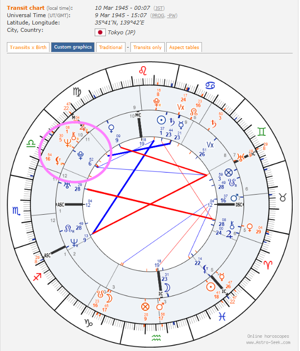 二重円(内側:出生図、外側:東京大空襲時のトランジット図)