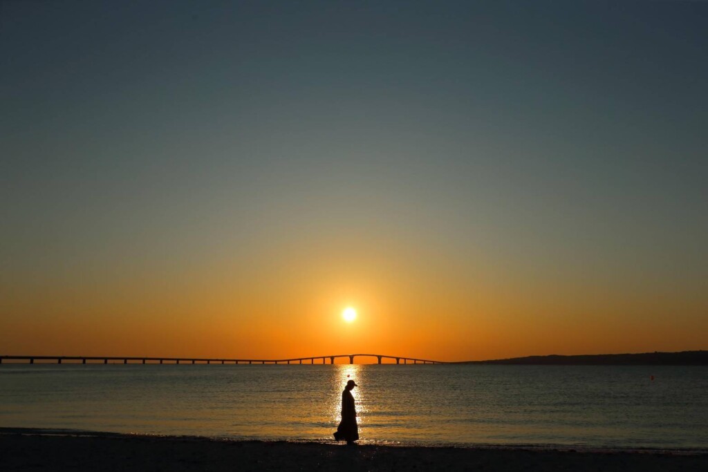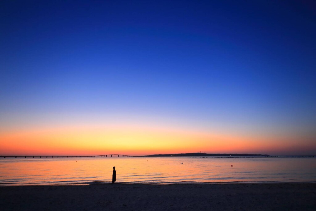 一年のうちで限られた時期しか見ることができない、伊良部大橋の真ん中に太陽が沈んでいくという奇跡的なアライメント(整合)。